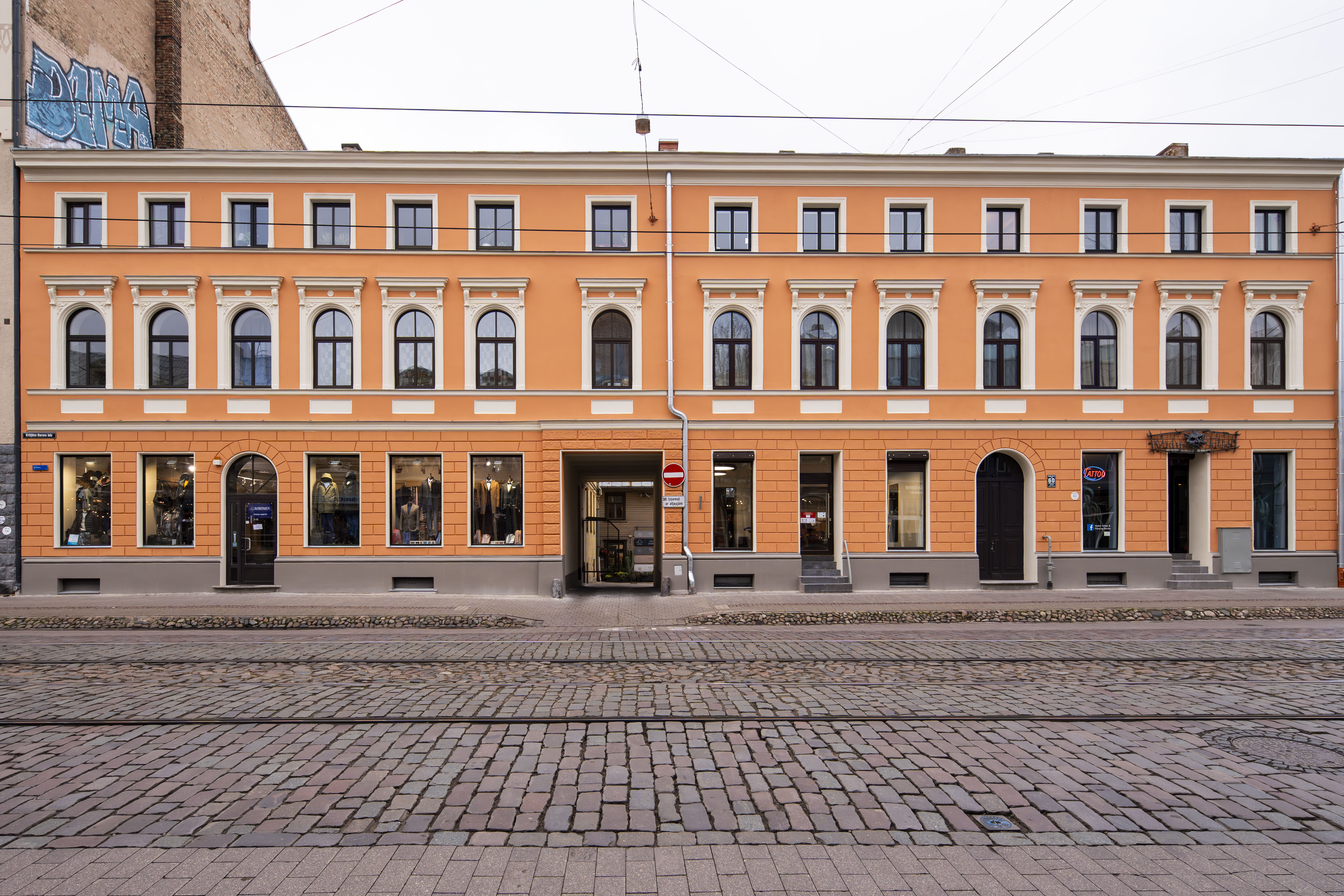 Bauskas ielas 53 ēkas atjaunotā fasāde