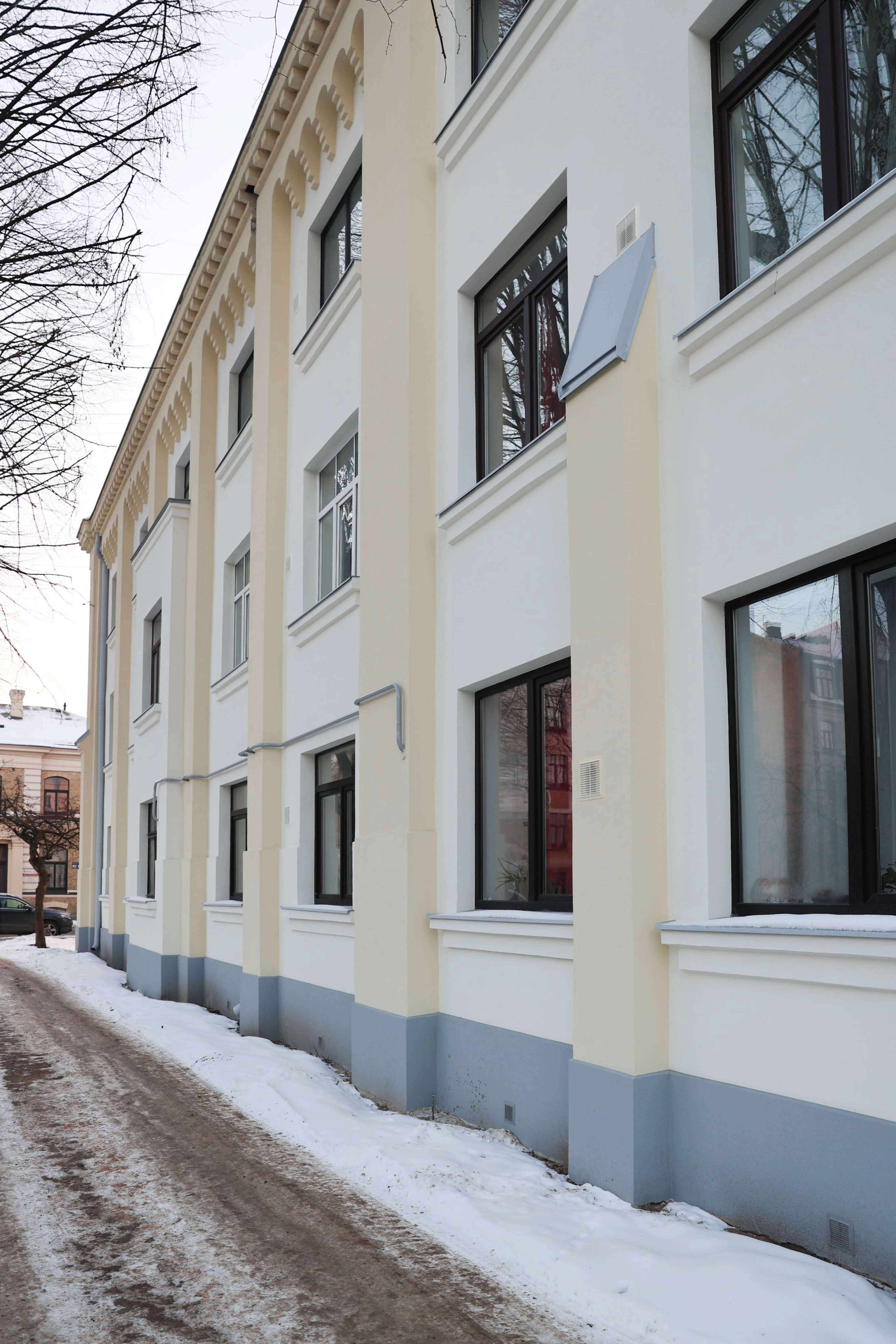 Fasādes atjaunošanas darbos galvenais uzdevums bija saglabāt ēkas raksturu, vienlaikus novēršot laika gaitā radušos bojājumus. Darbu laikā tika demontēti bojātie apmetuma slāņi, fasādes virsmas attīrītas no piesārņojuma un apauguma, nostiprināts un atjaunots vēsturiskais apmetums, rekonstruēta dzega un atjaunoti balkoni. Īpaša uzmanība tika pievērsta cokola daļai – attīrīts un atjaunots ķieģeļu mūris, sakārtotas šuves un nodrošināta aizsardzība pret mitruma ietekmi.