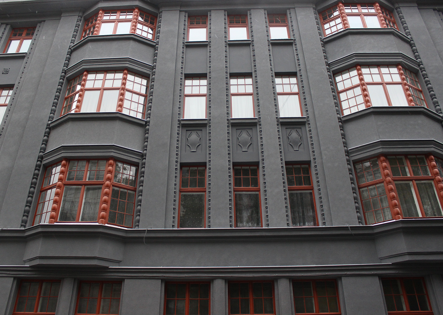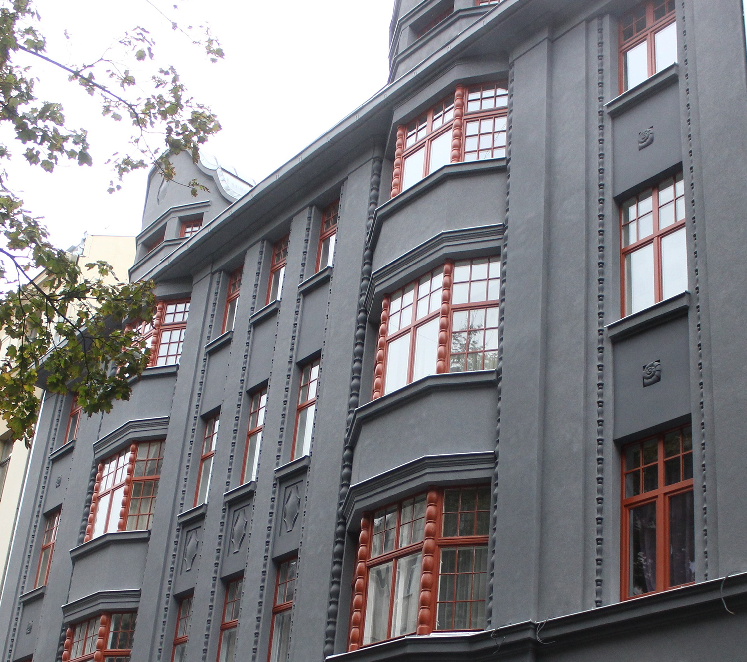 Ēkas fasāde kopumā atbilst 1912. un 1913. gadā izstrādātajam būvprojektam: